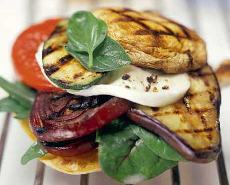 Adagiale sul grill, o Bistecchiera, e grigliate il tutto per circa 8 minuti da ambo i lati. Le fette di pomodoro andranno grigliale solo per 1-2 minuti dopo averle spennellate con poco olio. Salate e pepate.