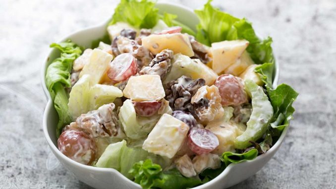 Questa insalata tradizionale è deliziosa e si potranno variare gli ingredienti secondo le proprie preferenze. Provate ad aggiungere pollo alla griglia, per fare un’insalata Waldorf più particolare. Non è solo un semplice contorno, ma una ricca e gustosa insalata ideale un po’ in tutte le stagioni