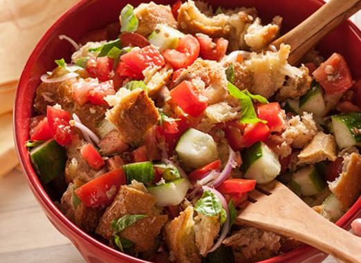 Piatto d’apertura tipicamente Toscano, la panzanella è una di quelle ricette della tradizione popolare che permettono di reciclare ingredienti avanzati, in questo caso il pane casereccio tagliato a fette.