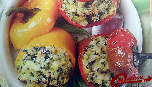 Dovrete ottenere un ripieno ben cotto e i peperoni morbidi ma non bruciati o secchi. Sfornate e servite subito.