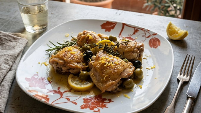 Un secondo piatto di ispirazione mediterranea, essenziale ma ricco di equilibrio: la freschezza del limone, la sapidità delle olive e la rosolatura del pollo si incontrano in una preparazione semplice, adatta sia a un pranzo quotidiano che a una cena informale con ospiti. È una di quelle ricette che non cercano effetti speciali, ma si affidano alla naturale armonia degli ingredienti, capaci di trasformare un piatto semplice in qualcosa di sorprendentemente completo.