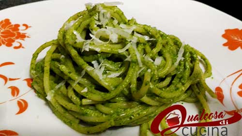 Tenete da parte un po’ d’acqua di cottura che potrà servirvi per il pesto e per rendere più fluido il piatto una volta condito.