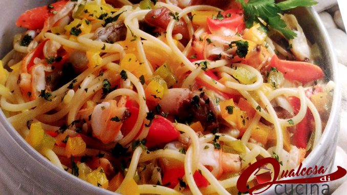 Gli Spaghetti allo Scoglio con Peperoni sono una ricetta di mare intramontabile, adatto per ogni stagione dell’anno. Un vero capolavoro tipico della cucina campana che si presta a numerose modifiche, percio’ preparatela con il pesce che avete a disposizione, e da presentare in due versioni, con o senza pomodoro , normalmente pomodorini.